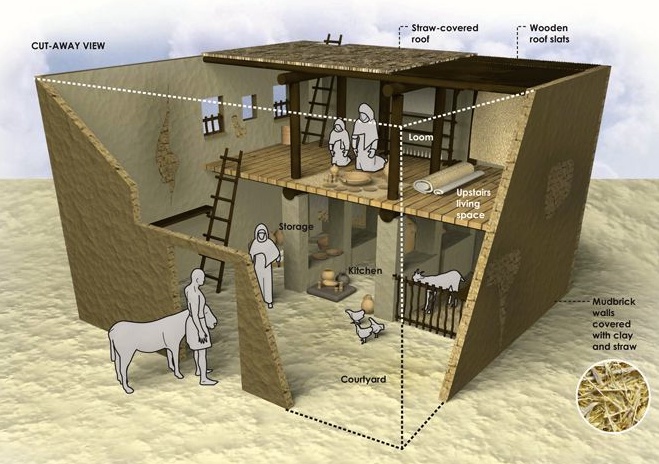 The second floor was the living quarters. It was the sleeping area. It sometimes had guest rooms and a room for entertaining. The bottom floor or main floor was like a basement and often had a place for animals. Stables or mangers often part of the ground floor of the home.